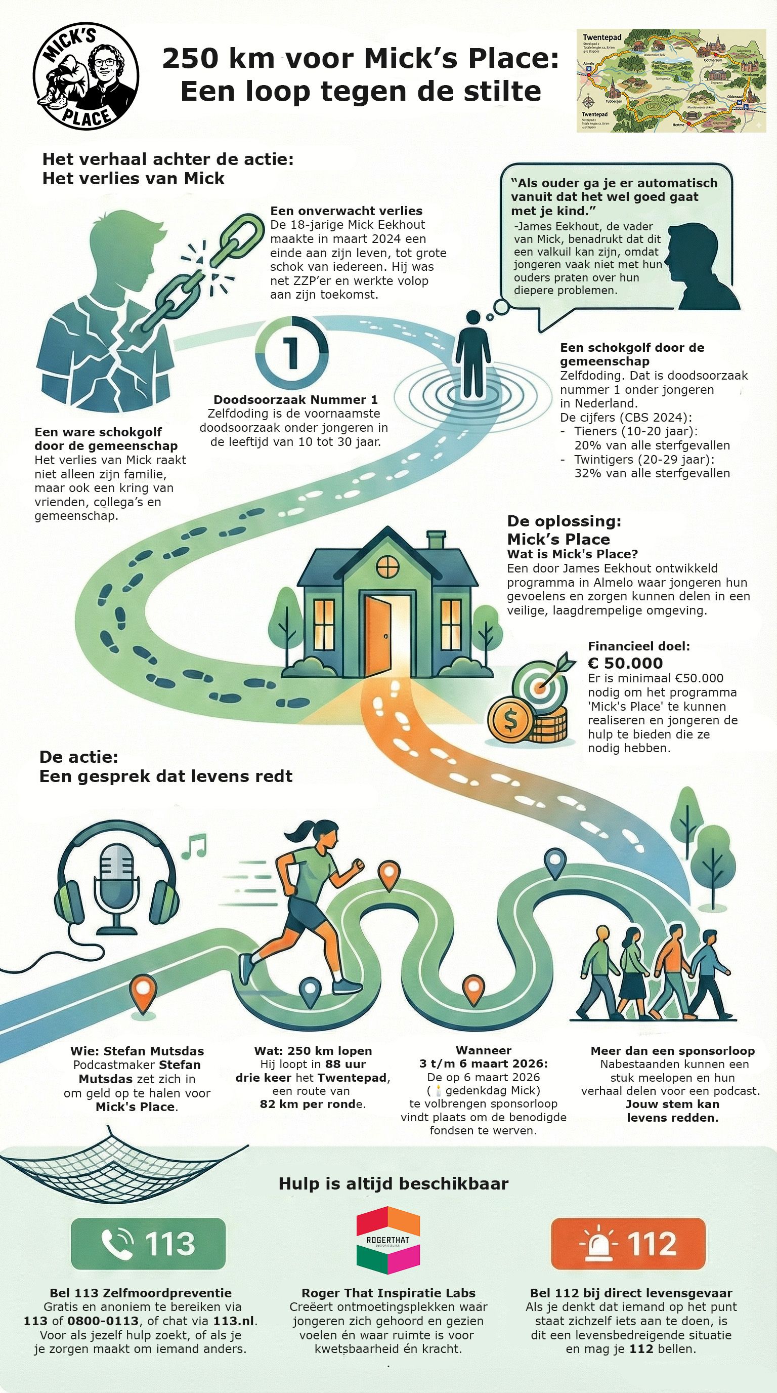Van 3 tot en met 6 maart 2026 loopt podcastmaker Stefan Mutsdas drie keer het Twentepad (ruim 83 km per ronde) om geld op te halen voor dit initiatief.